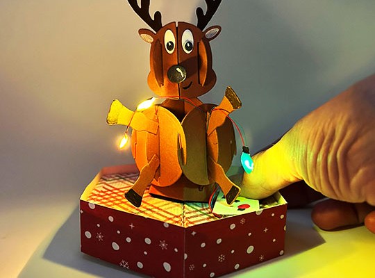 Lights: From the Penguin and Reindeer Snowman Add-Ons set, cut two sets of light bulbs from white and color with markers. Use one set of Pear Blossom Press EZ Lights which are available from the KB Riley on-line shop. (Watch the video above for how the lights were added to the reindeer.)