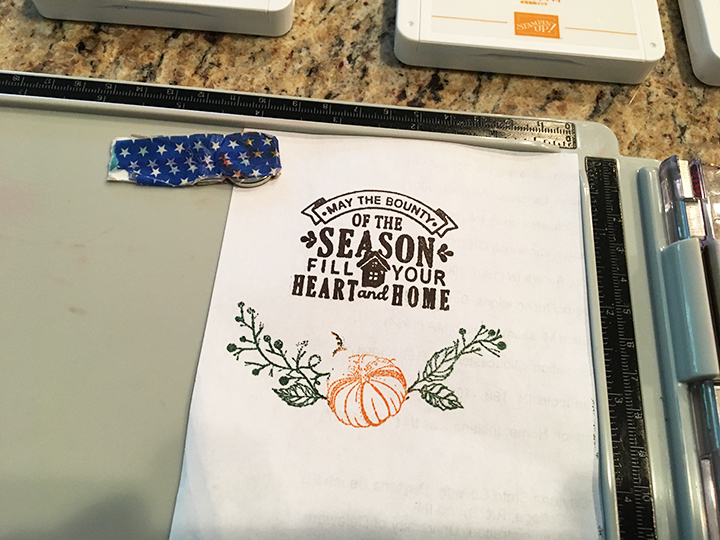 As is my style, I stamped the envelope flap with an older Kaisercraft stamp sentiment to set the mood for the card.