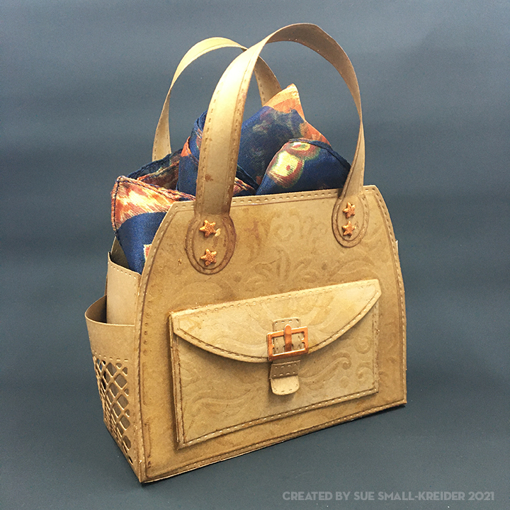 All of the glued layers make for a study bag that measures 6 ¼ inches high x 5 inches wide and 2 inches deep. I plan to gift a lovely scarf and earrings in this bag.