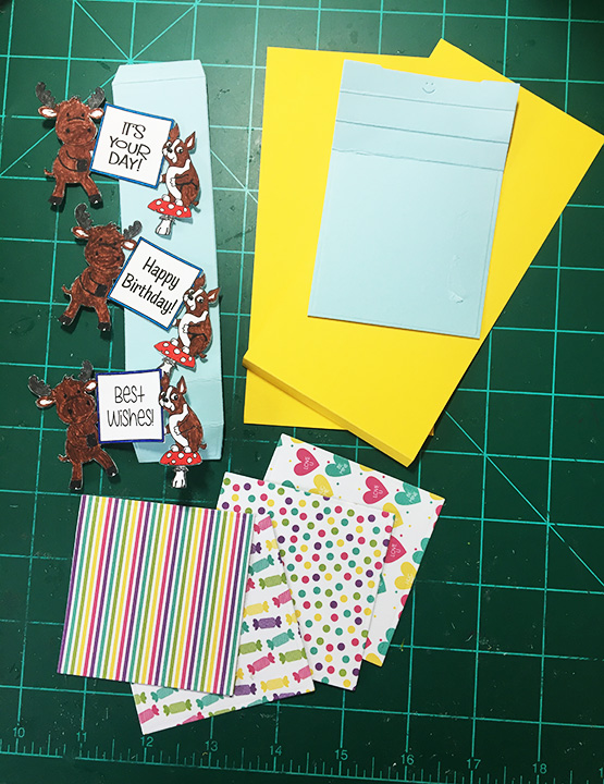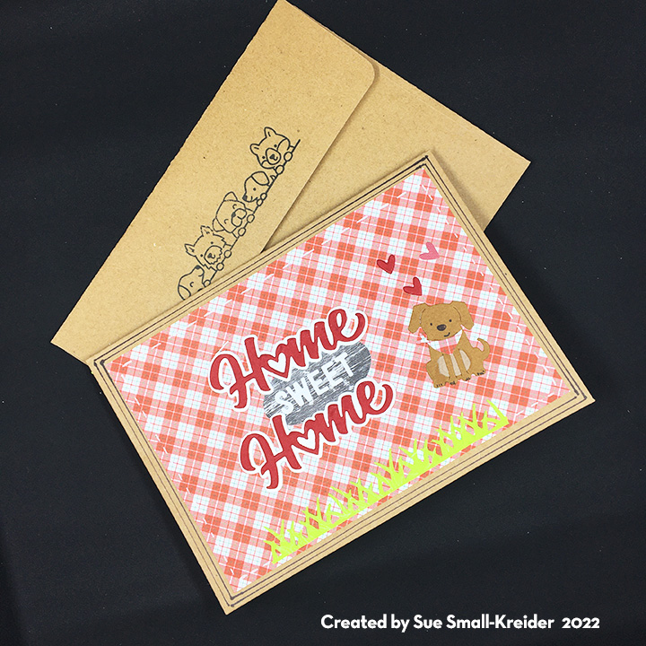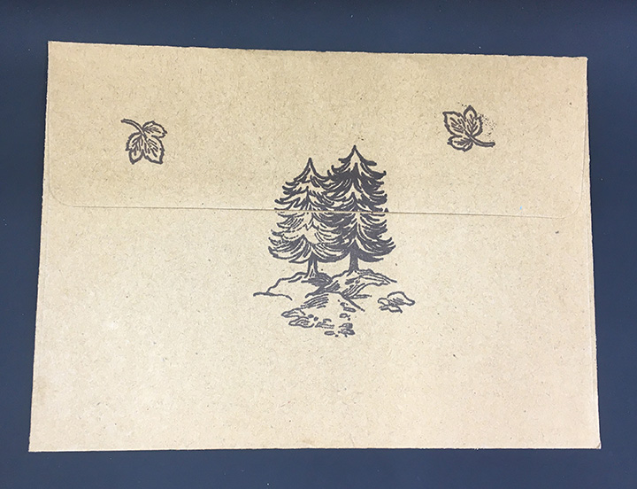 Envelope: A brown kraft paper envelope completes the card with stamped images from the companion stamps of the patterned papers by Craft Consortium.