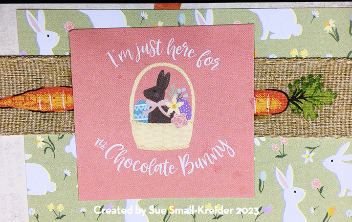 Decorations: The card front and back panels were covered with single sheets of patterned paper. The front features rain and clouds cut from the back of the double-sided paper while the back features a stained glass effect sunset. Grass edging was cut from the excess green strip cut from the back panel paper and used with the extra flowers to decorate the front and back of the card.