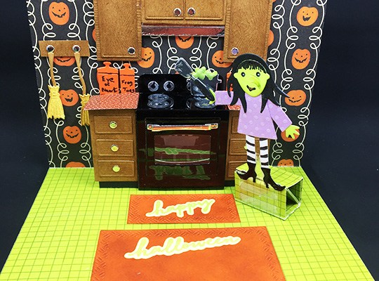 For this pop-up card for a crafting friend, I converted Karen Burniston’s new Oven Pop-Up and Small Script – Christmas, along with along with a number of her previously released dies into a laundry/crafting room.
