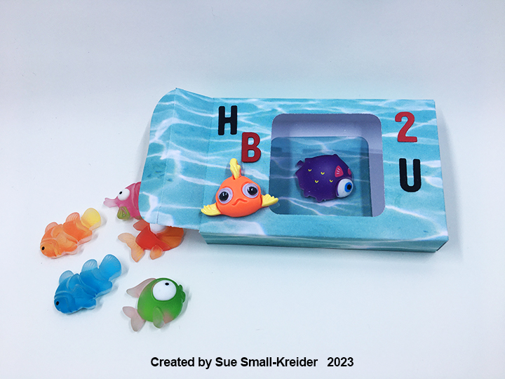 Iβve had some flat back fish embellishments in my stash for awhile and the Candy Hearts Box in the December 2023 release by Karen Burniston begged to be the container for these candy-like fish.
