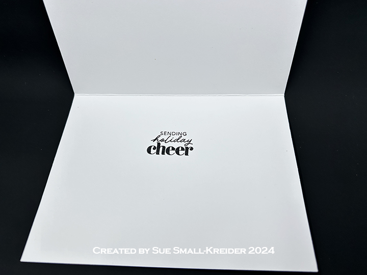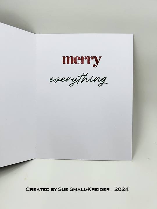 Sentiments: While the My Favorite Thing’s What’s Cooking collection comes with a stamp set, none of the sentiments fit the Christmas theme. So I used a “Merry Christmas” from The Greetery and two stamp sentiments from the Scrapbook and Cards Today’s Jolly Holiday kit for the card inside and envelope flap.