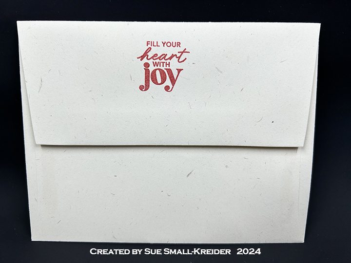 Envelope: The card fits into a 6×9 catalog envelope. The back flap are stamped with an Hero Arts sentiment and images from Lawn Fawn.