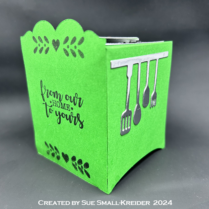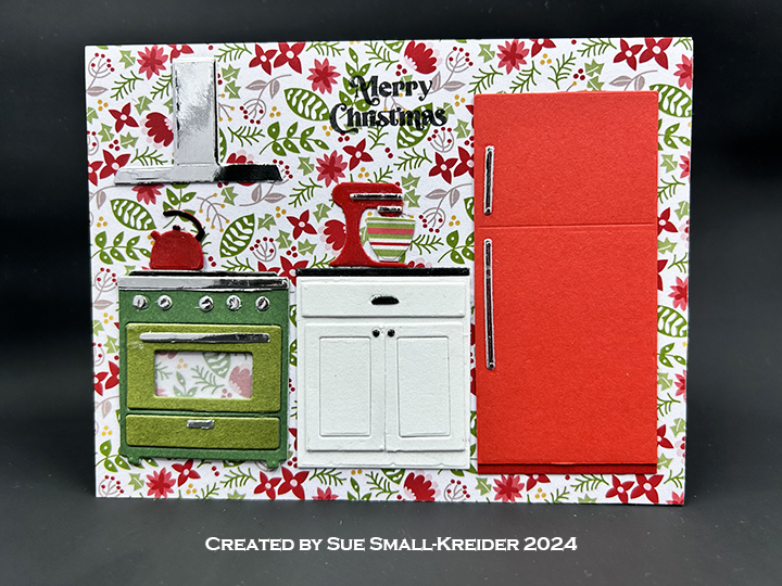 I’m using My Favorite Things What’s Cooking kitchen dies for this A2 (4.25×5.5-inch) card.