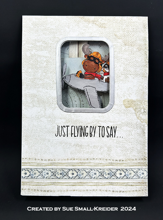 This card was made to celebrate Simon Says Stamp! Stamptember with Riley & Companyβs Fly By stamp set. (The Simon Says Stamp! Fly BY is sold out, but you can use this Riley & Co. Airplane Riley stamp set instead.) It also uses pop-up dies by Karen Burniston.