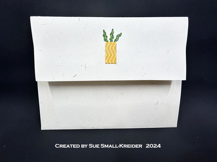Envelope: The card fits into an A2 (4.25x 5.5-inches) size envelope with a die-cut plant on the back flap.
