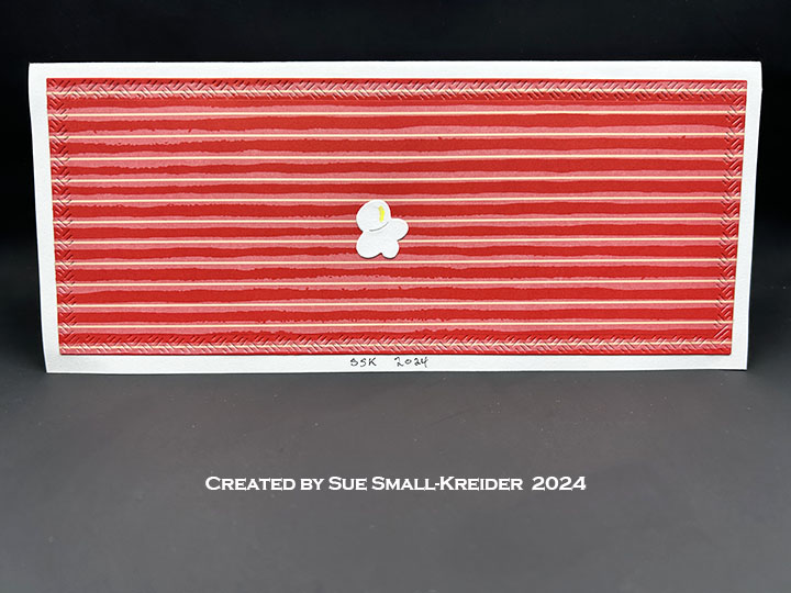 Envelope: The card fits into an A2 (4.25x 5.5-inches) size envelope. I stamped a bunny holding a heart with the words “Especially for you” on the back envelope flap.