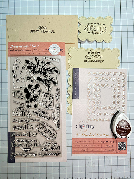 Envelope: Stamp in blue ink “Ahoy Matey!”to the back flap using Karen Burniston’s Pirate Sentiments stamp set.