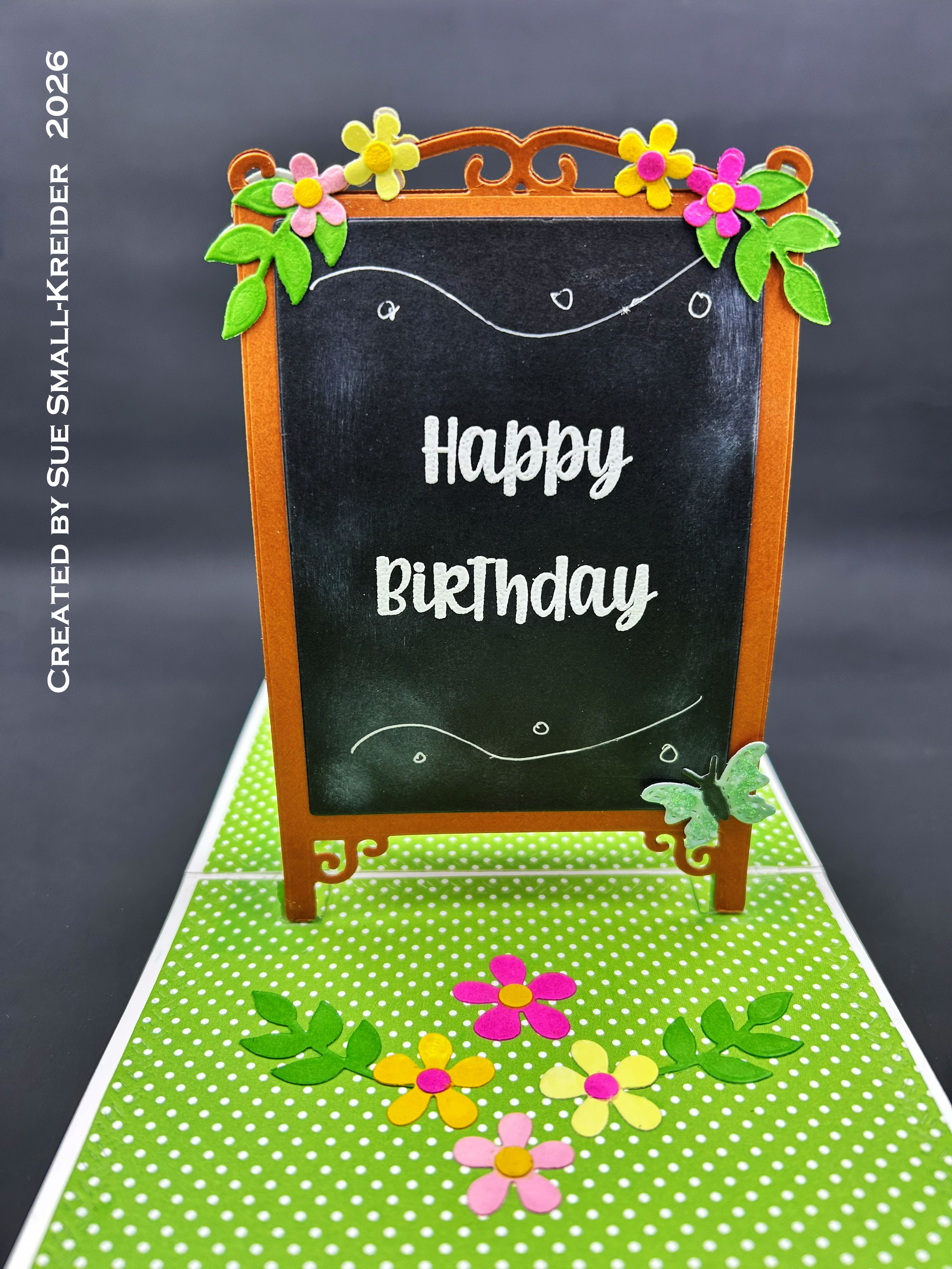 This card was made for Craft Roulette #306 whose parameters were: A7 card, summer dessert colors, chalkboard element and bottom border. I used a variety of dies and stamps from Concord & 9th, Fun Stampers Journey, Hero Arts and Karen Burniston to make this pop-up birthday card.