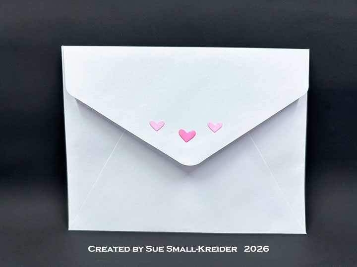 Envelope: Β The card fits into an A2 (4.25x 5.5-inches) size envelope decorated with some of the colored hearts.