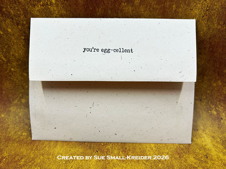 Envelope: Using a A2 (4.25×5.5-inch) envelope I stamped “you’re egg-cellent” on the back in brown ink.