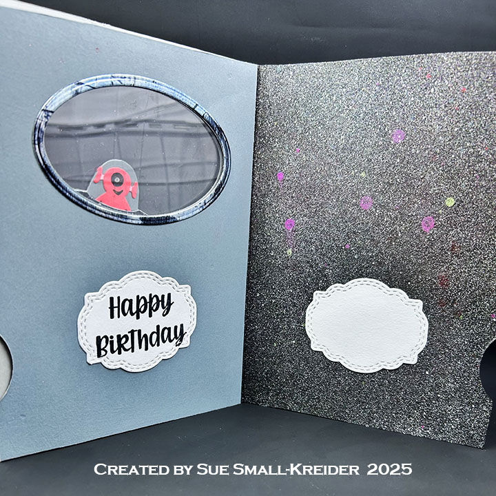 Sentiments: Β All the inside die cut sentiments used on the card come Karen Burniston designs including the Katherine Label mechanism that pops the βHappy Birthdayβ up with its Big Birthday Charms balloons. The stamped verse is from Craft Rouletteβs Funn Sentiments #01.