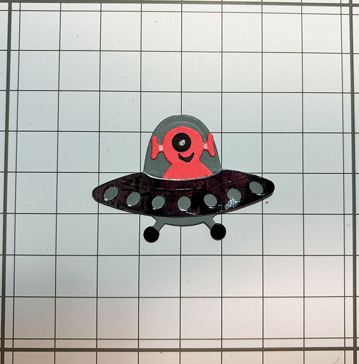 Cardbase: I used purchased A7 (5×7-inch) cardbases that I stenciled the fronts with Shimmer Relief Paste and stencils by Honey Bee Stamps (Scattered Seeds) and Scrapbook.com (Hearts). The card backs feature a single balloon from the Big Birthday Charms die set.