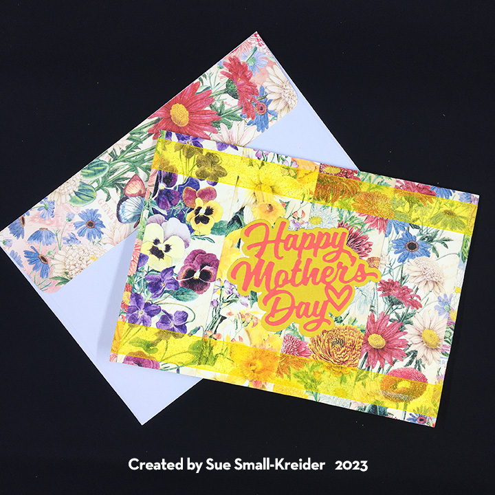 May’s card is made with Karen Burniston’s Fun Flowers dies and her Bouquet Sayings clear stamps.