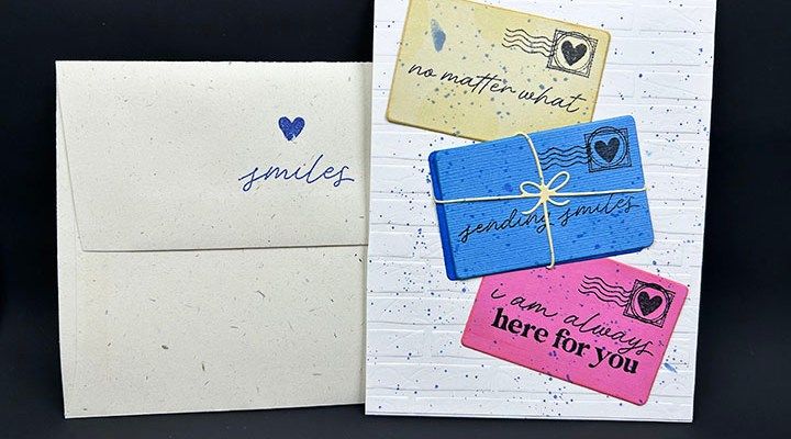 Cardbase: I cut an 8.5×11 sheet of white 65lb. cardstock in half to create two 5.5×8.5-inch rectangles that I fold in half to make side-fold A2 cardbases. Cut one cardbase into two 4.25×5.5 panels.