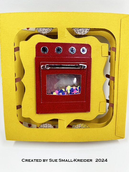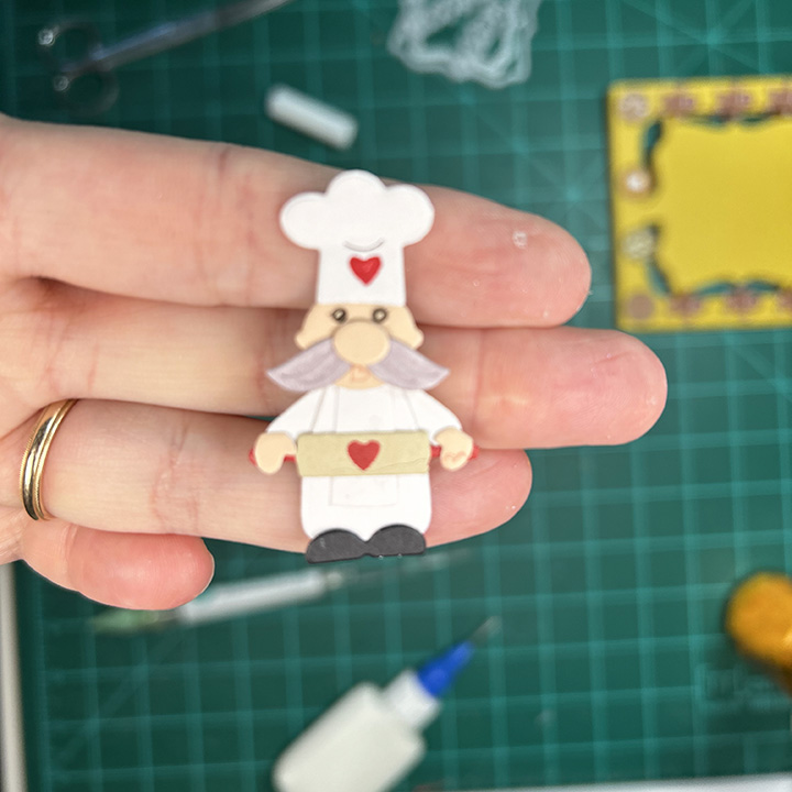Label Pop-Up: Cut one of the large die in the Little Labels Pop-Up set from green cardstock. (Watch the assembly video located at the bottom of the linked page.) Assemble as show in the video above.