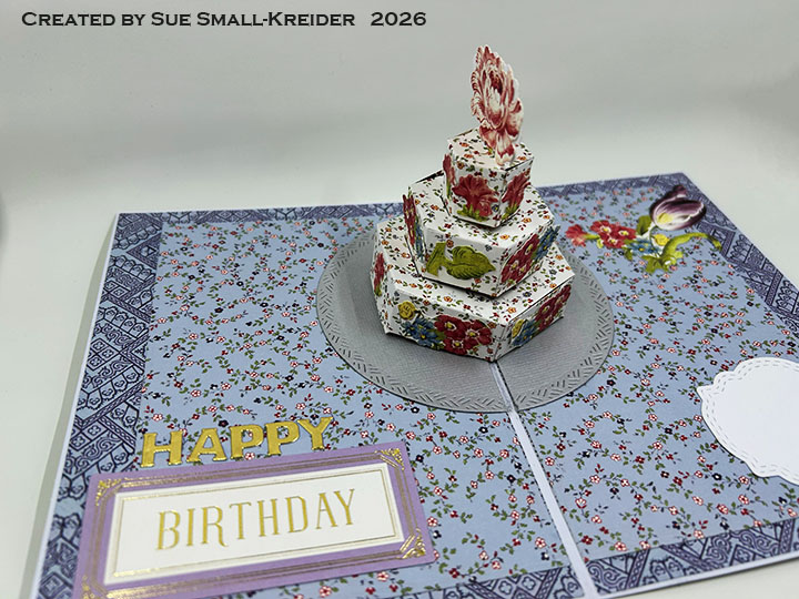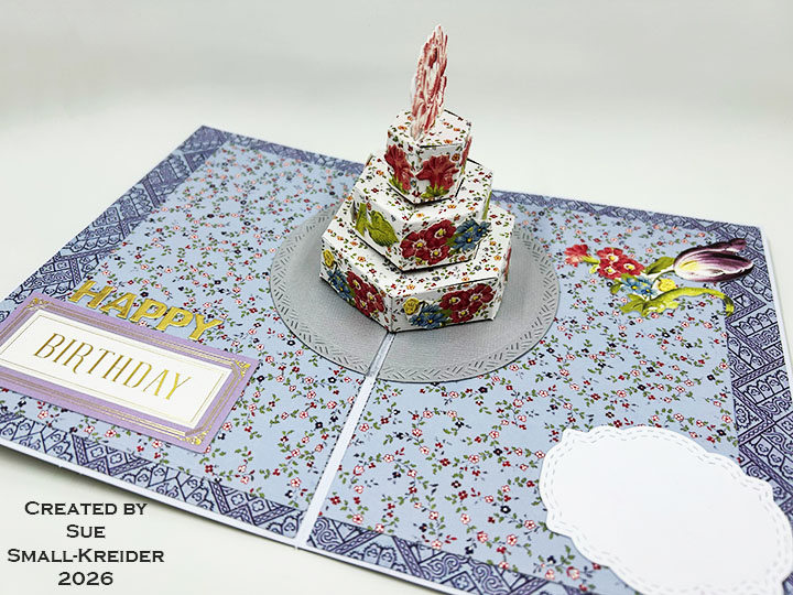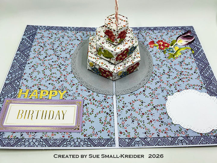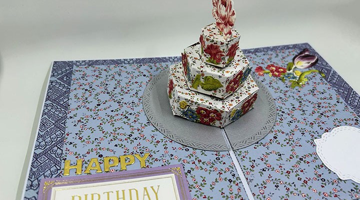 This cake pop-up card is for a spring birthday for a flower garden enthusiast and is made using Karen Burniston dies.