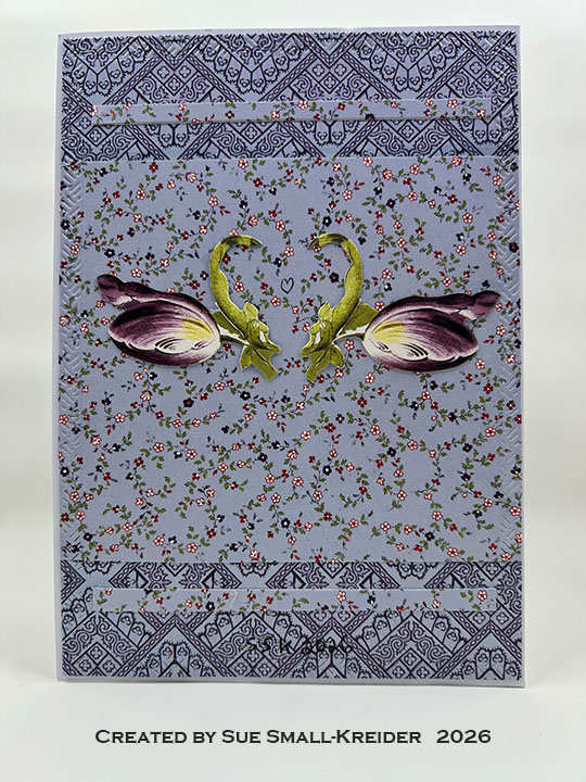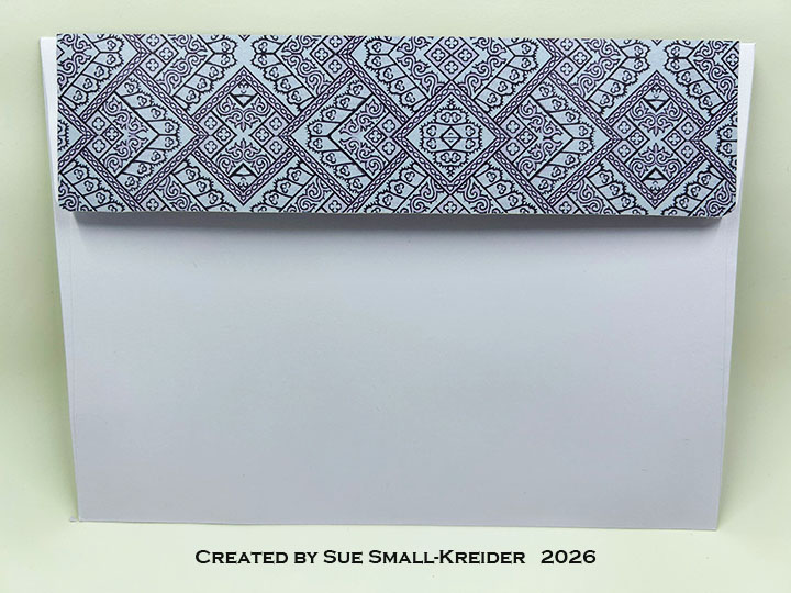 Envelope: The card fits into an A7 (5×7-inch) size envelope with patterned paper glued to the back flap.