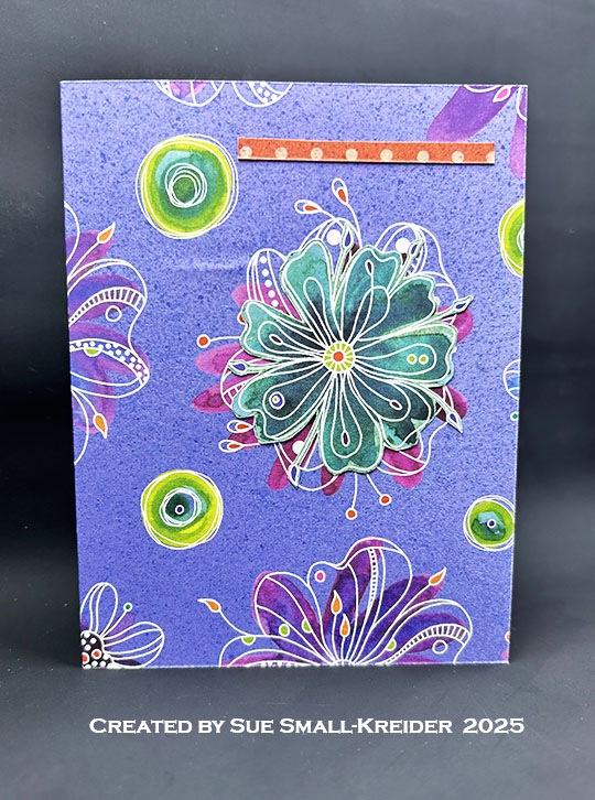Cardbase: Start with a 8.5×5.5-inch piece of double-sided patterned cardstock and fold in half to form a side-fold A2 (4.25×5.5-inch) card.