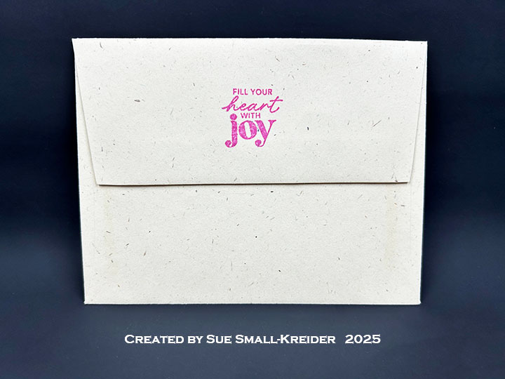 Cardbase: Emboss a 5.5-8.5 piece of white 65lb. cardstock using the Honey Bee Stamps Soulful Season 3D embossing folder following the directions in the video above. Trim down to a 5×7-inch panel. Glue to the front of an A7 (5×7-inch) cardbase. (I used a purchased cardbase and envelope.)