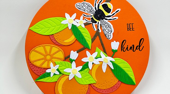 I used patterned paper for all the layers except the backer which is a heavy weight black cardstock. The Radiant die cuts out the sky section which I taped on the backside into its frame and then glued the black backer pieces to it. Using glitter ink pens by Spectrum Noir, I colored in the night sky leaving a hazy yellow moon for the bats to fly in front of for contrast.