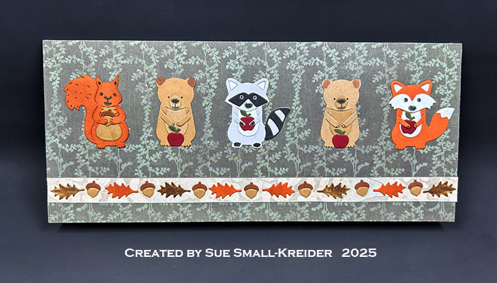 Cat: Using the Dog and Cat Playful Add-Ons die set, cut from black, the large cat ears, paw arms, nose/mouth, and small oval eyes. From pink cardstock cut, the small cat ears, nose, tongue and paw back pieces. From white cardstock cut one set of large oval eyes and one set of whiskers. Assemble and install as show in the video. Use a white gel pen to add the eye and nose highlights. I