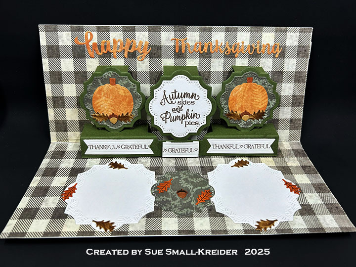 Sentiments: Word surgery (i.e. – Die cut words being cut apart and glued back together to form new words) was involved to make the custom words for this card’s front. “What’s” is made from the “W” from the Go Wild die set and the “hat” from the word “Christmas” in the Merry Christmas die set. “New” is from the Happy New Year die set. Word Set 4 -Just A Note used the words “up” and “to say” as well as the words “Blessings” and “color” from Word Set 7 – Autumn, to make the words “pussy cat.” The three “WHOA” inside used the Mini Alphabet and Numbers set.