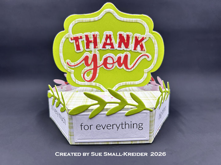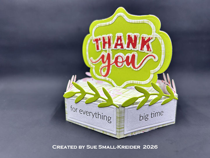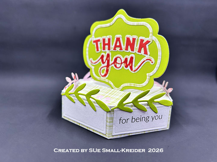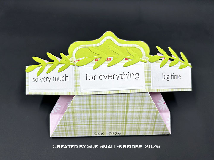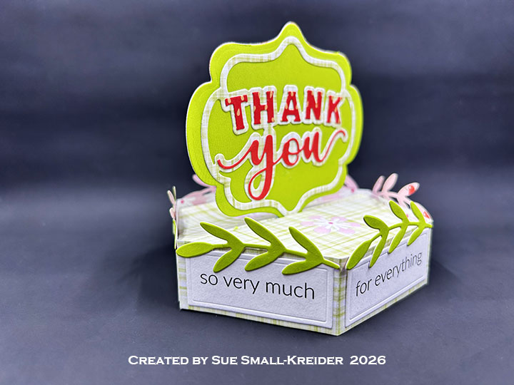 Today’s card uses the new die sets of Thank You Lorna Add-Ons and the Stage Pop-Up as well as the previously released Lorna Label Pop-Up. Sentiments come from the new clear stamp sets called Thank You Phrases and Love You Phrases. The new dies and stamps will be available for order starting February 2, 2026.