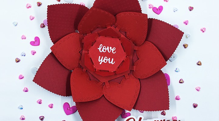 Hearts Add-Ons: The Hearts Add-On cut a pivot panel that attaches to two Fancy Label Accordion panels. It also has dies to cut decorative hearts in three sizes. Cur one hearts panel from a double-sided decorative paper. Train the folds on the panel as directed on the packaging. Decorate the heart panels on the front and back sides.